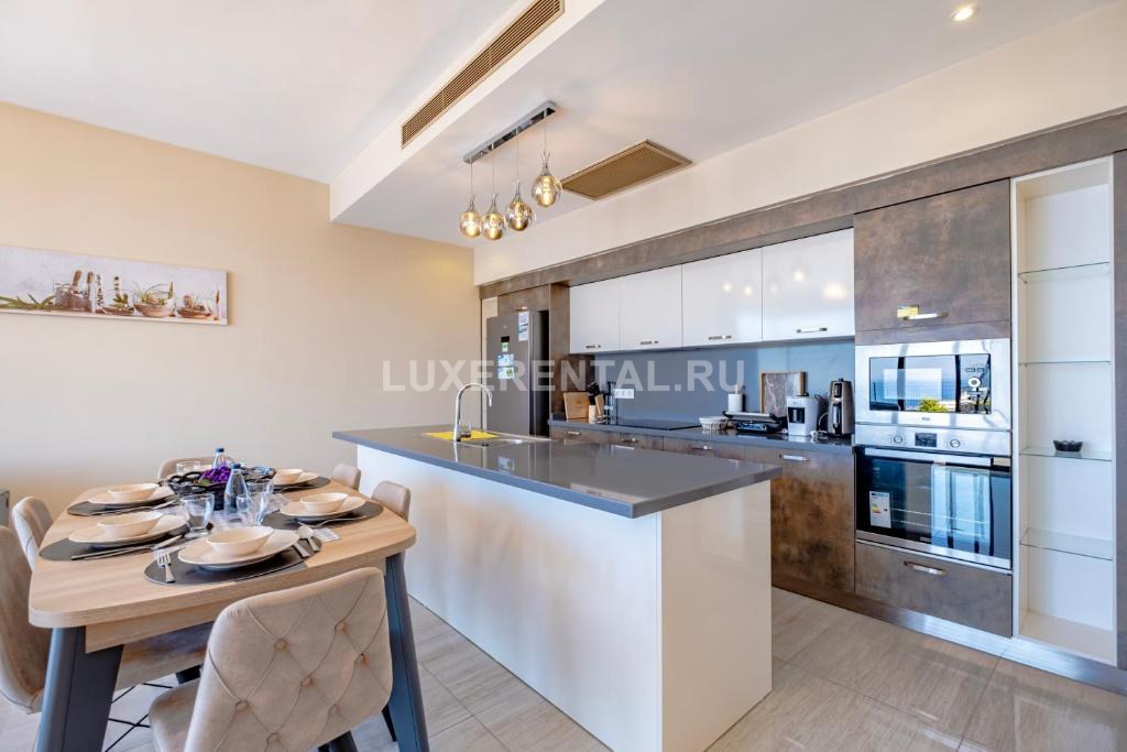 полностью оборудованная кухня и столовая зона.