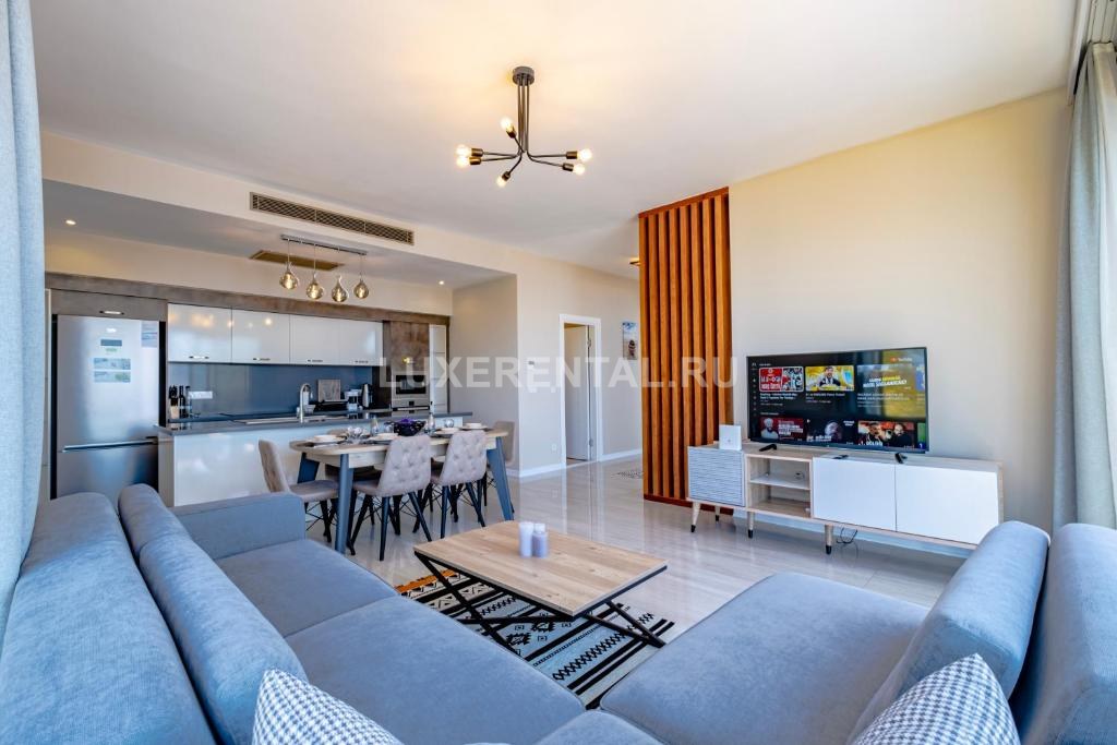 просторная гостиная открытой планировки;