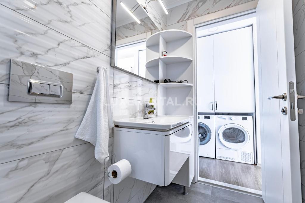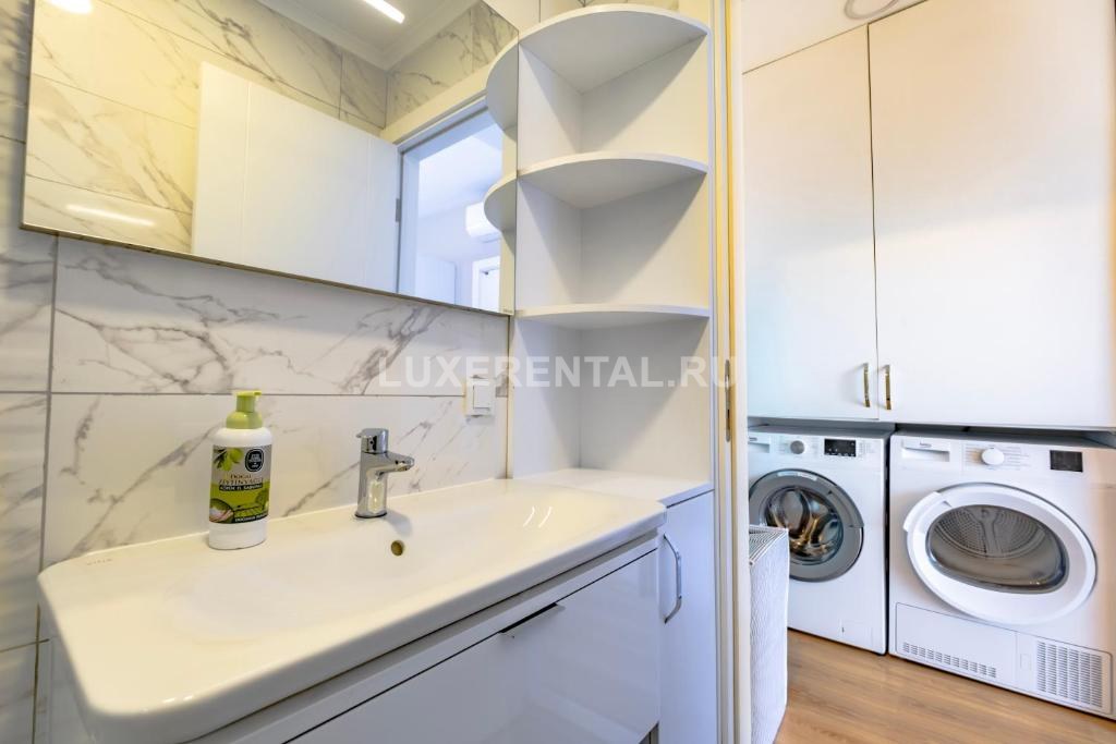 спальня с двуспальной кроватью, родительской ванной комнатой, стиральной и сушильной машинами;