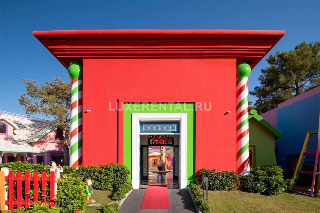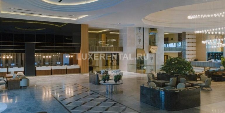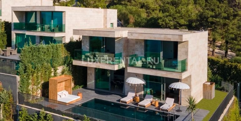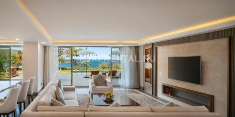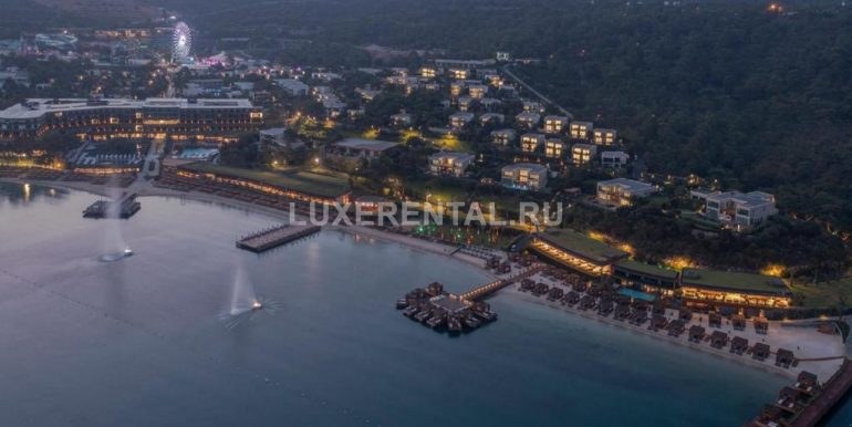 Вилла находится при отеле Vogue Hotel Supreme Bodrum на берегу моря в заливе Торба, в окружении сосен. Территория комплекса имеет общую площадь 400 000 кв.м и располагает открытыми бассейнами с 33 водными горками в зоне Candyland, спа-салоном, песочницей и парком развлечений для детей. Этот 5-звездочный отель имеет два пляжа общей длиной 750 метров. Отель предлагает обслуживание по системе «ультра все включено».