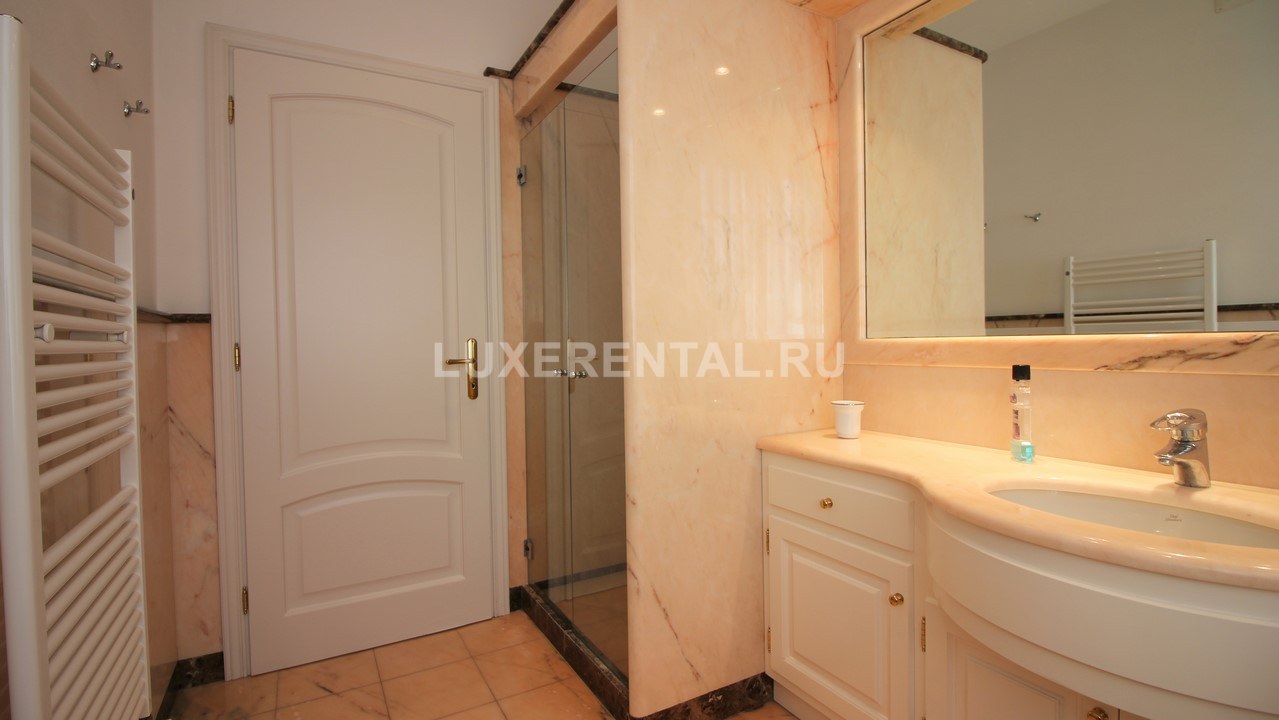 Имеет дорогостоящую внутреннюю отделку. Все санузлы выполнены из мрамора различной цветовой гаммы. В спальнях паркет.