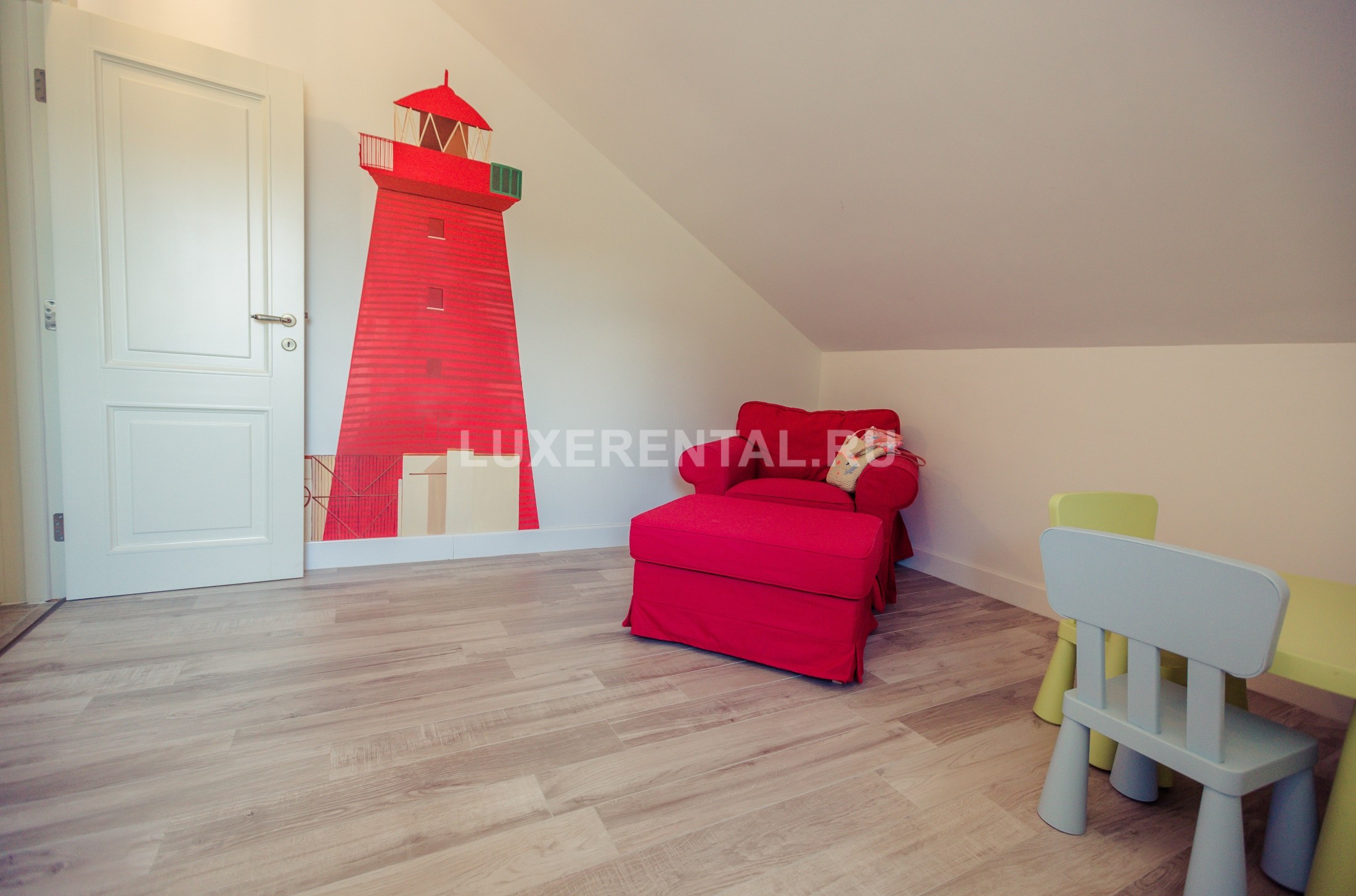 На втором этаже 3 спальни (спальня-сьют с зоной отдыха, кухней и душевой, спальня с двуспальной кроватью и спальня с односпальной кроватью), отдельная душевая комната.