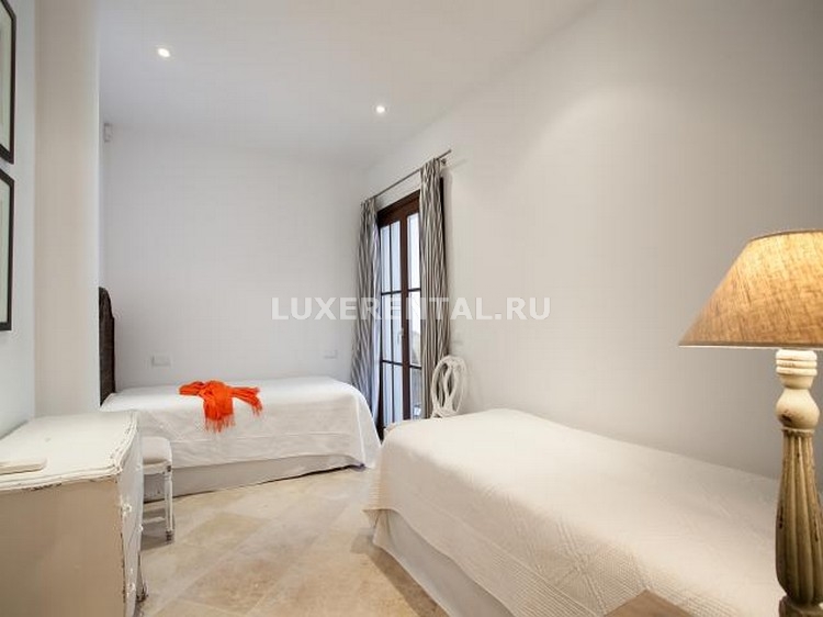 Вилла состоит из двух уровней и имеет 5 спален (4 двуспальные кровати и 2 односпальные), 5 ванных комнат, а также дополнительную комнату с односпальной кроватью, которая доступна за дополнительную плату. Просторная и элегантно меблированная гостиная имеет удобные диваны и кресла, двери отсюда ведут на террасу с мебелью для обедов и отдыха. Кухня полностью оборудована современной бытовой техникой и имеет барную стойку для завтраков. Есть небольшой офис.