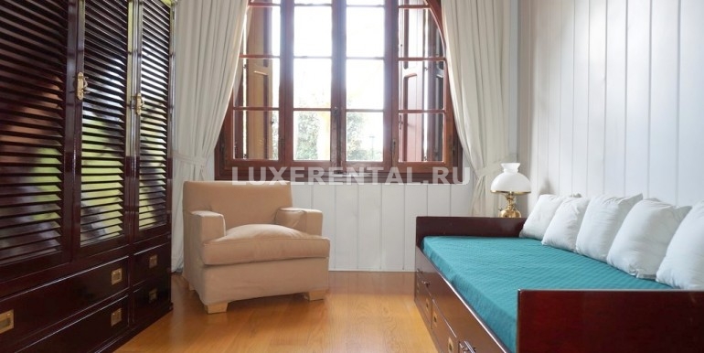 На втором этаже расположены 2 сьюта – большая спальня, отдельный с/узел и еще 1 комната (с шкафами и с одноместной кроватью, может быть использована или как гардеробная, или как спальня); еще 4 двухместных спальни, каждая с отдельным с/узлом.