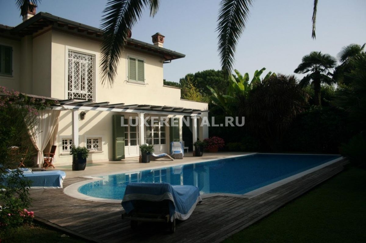 Великолепная вилла в Форте дей Марми, в 950 метрах от моря, с бассейном и большим ухоженным садом. Вилла очень уютная, с великолепными верандами и террасами. Декорирована в классическом итальянском стиле, многие предметы мебели изготовлены из натурального дерева, среди них есть и антикварные.