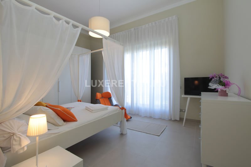 Первый этаж: просторная гостиная-столовая, 3 спальни с двуспальными кроватями, индивидуальными ванными комнатами и кондиционерами, 1 спальня с 2 односпальными кроватями, индивидуальной ванной комнатой и кондиционером.