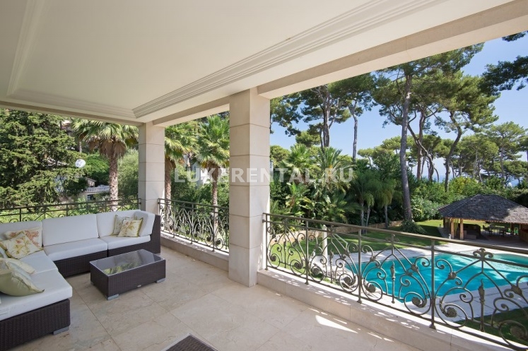 Великолепная вилла площадью около 440 m² расположилась на участке около 2093 m² примерно в 800 метрах от пляжа Garoupe. Она состоит из просторной гостиной, столовой, летней гостиной, полностью оснащенной кухни, 5 спален, террасы с видом на море. На цокольном этаже имеется турецкая баня, джакузи, спортзал, гостиная для просмотра TV. Ухоженный сад, бассейн с подогревом, пул-хаус, летняя кухня, крытая парковка для двух авто. Въезд на территорию через автоматические ворота. Вилла роскошно обставлена и оформлена по самым высоким стандартам, мебель Fendi, полы из массива дуба, мрамор, хрустальные люстры, подсветка. Вилла полностью кондиционирована, полы с подогревом.